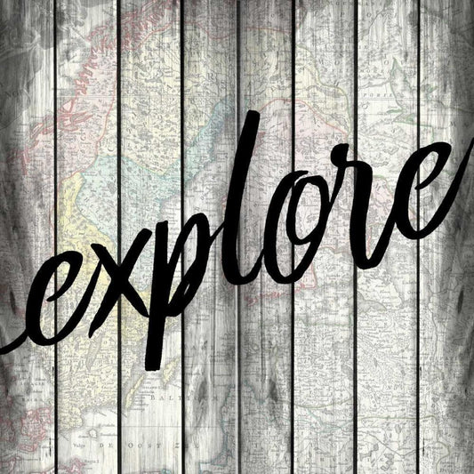 Explore Map Gold Ornate Wood Framed Art Print with Double Matting by Allen, Kimberly