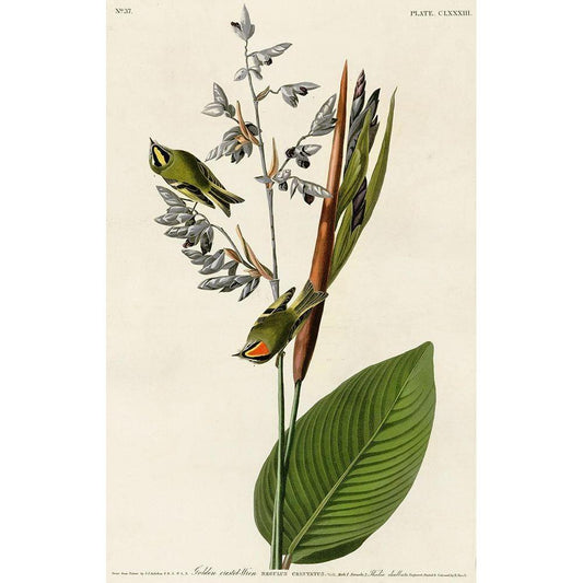 Golden Crested Wren Gold Ornate Wood Framed Art Print with Double Matting by Vintage Apple Collection