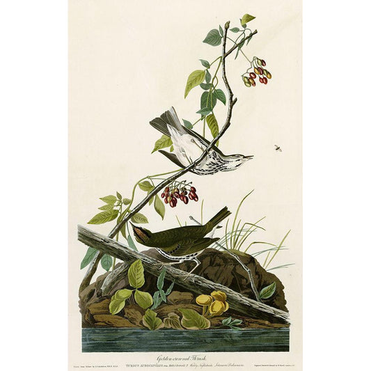 Golden Crowned Thrush Gold Ornate Wood Framed Art Print with Double Matting by Vintage Apple Collection