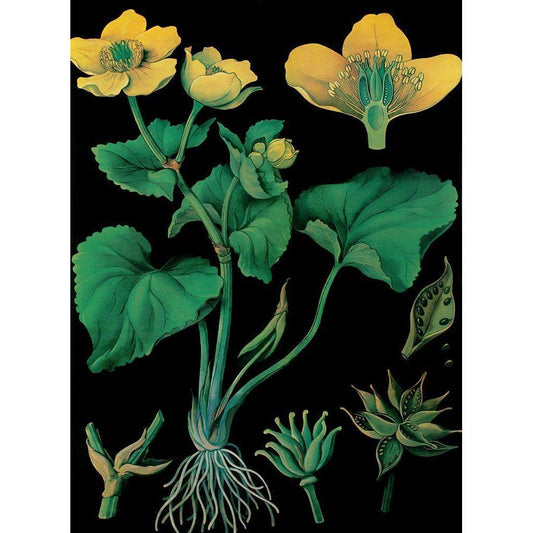 Marsh Marigold Gold Ornate Wood Framed Art Print with Double Matting by Vintage Apple Collection