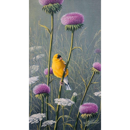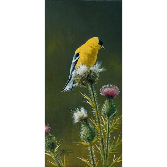 Goldfinch On Thistle Gold Ornate Wood Framed Art Print with Double Matting by Goebel, Wilhelm