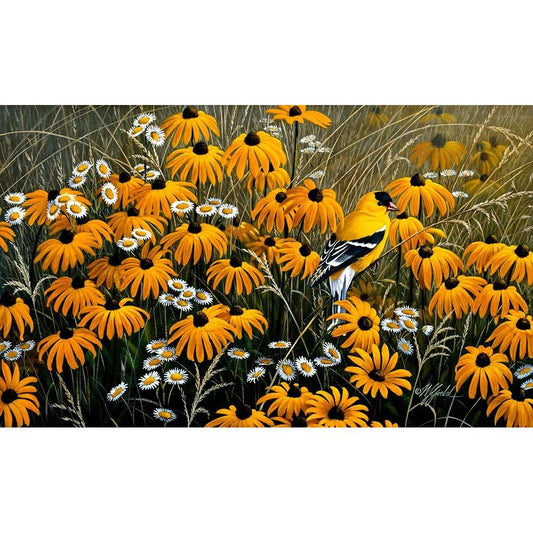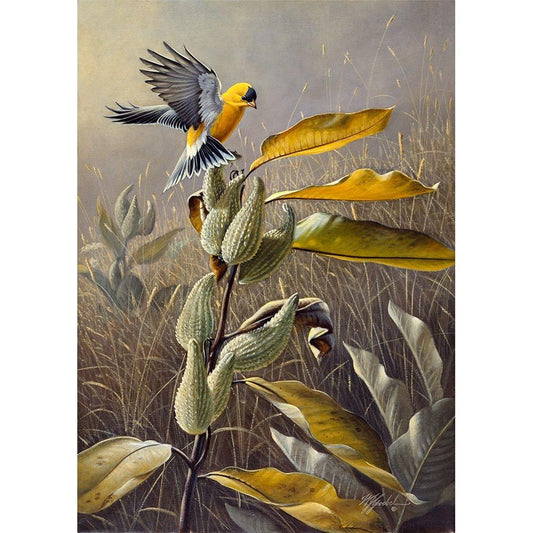 American Goldfinch Gold Ornate Wood Framed Art Print with Double Matting by Vintage Apple Collection