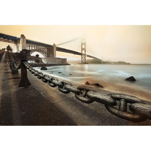 San Francisco Bridge Gold Ornate Wood Framed Art Print with Double Matting by Vintage Apple Collection