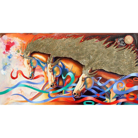 Stallions Of The Gods Gold Ornate Wood Framed Art Print with Double Matting by Stevenson, Graeme