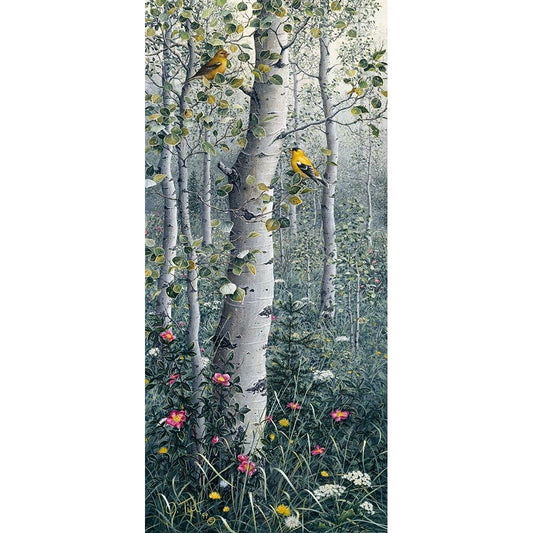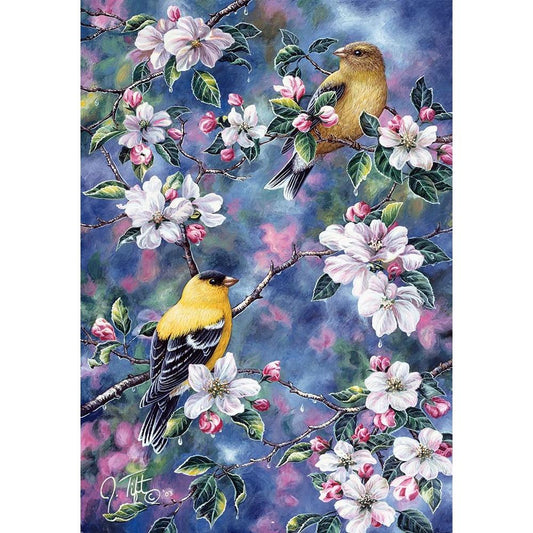 Gold Finch And Blossoms Gold Ornate Wood Framed Art Print with Double Matting by Tift, Jeff