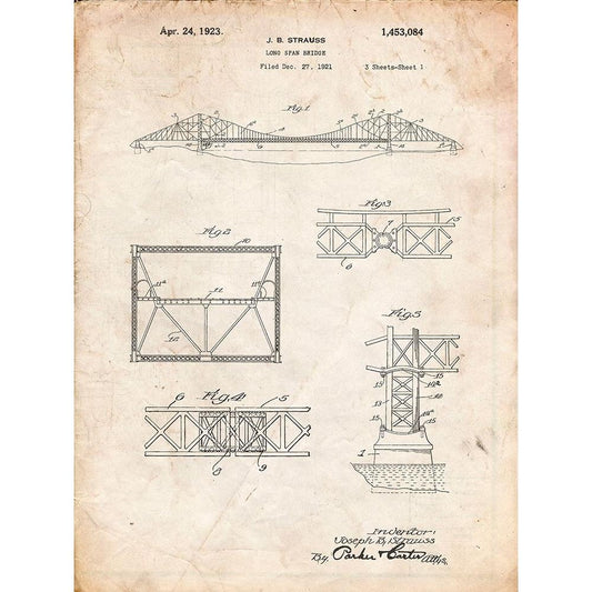 PP323-Vintage Parchment Golden Gate Bridge Main Tower Patent Poster Gold Ornate Wood Framed Art Print with Double Matting by Borders, Cole
