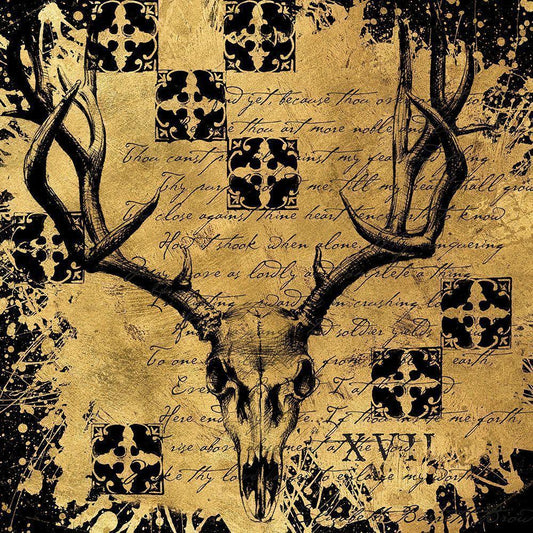 BAndG Deer Skull Gold Ornate Wood Framed Art Print with Double Matting by Art Licensing Studio