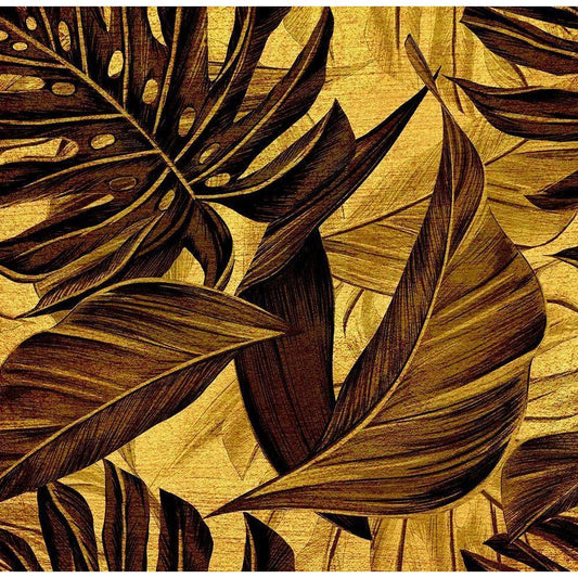 Golden Leaves Gold Ornate Wood Framed Art Print with Double Matting by Surma, Agata