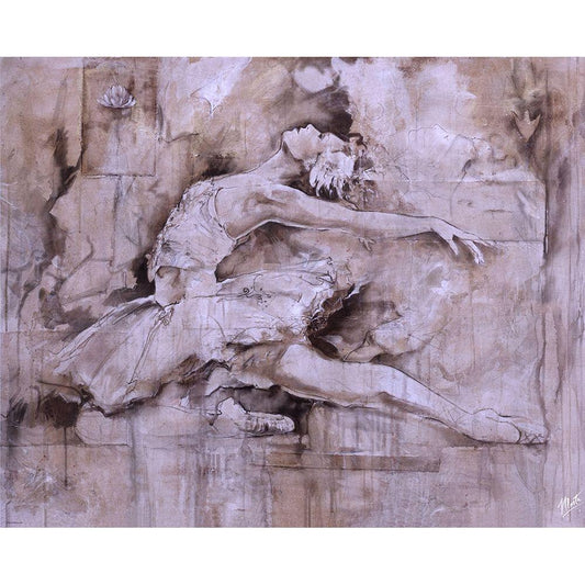 Dancer on Linen- Light Gold Ornate Wood Framed Art Print with Double Matting by Wiley, Marta