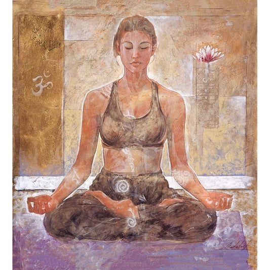 Yoga III- Beige Light Gold Ornate Wood Framed Art Print with Double Matting by Wiley, Marta