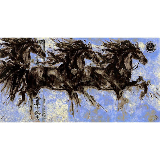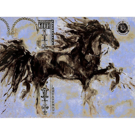 Chinese Landscape Blue Gold Ornate Wood Framed Art Print with Double Matting by Wiley, Marta