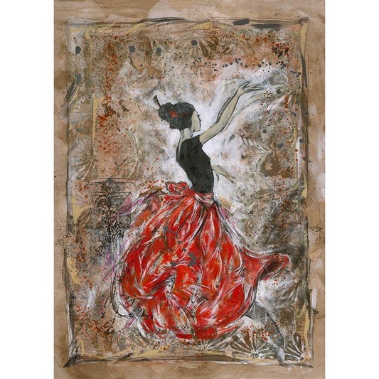 Dancer VI- Red Skirt Gold Ornate Wood Framed Art Print with Double Matting by Wiley, Marta