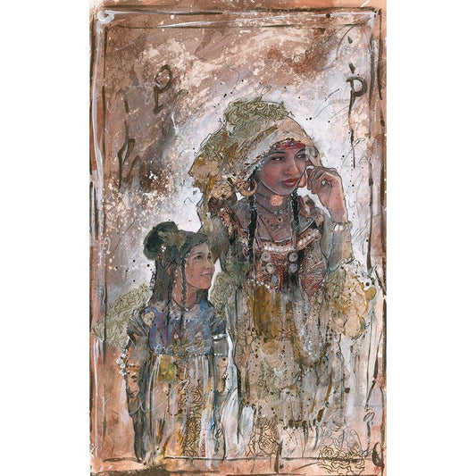 Sisters- Beige Gold Ornate Wood Framed Art Print with Double Matting by Wiley, Marta