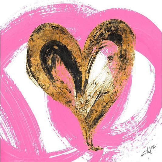 Pink and Gold Heart Strokes I Gold Ornate Wood Framed Art Print with Double Matting by Ritter, Gina