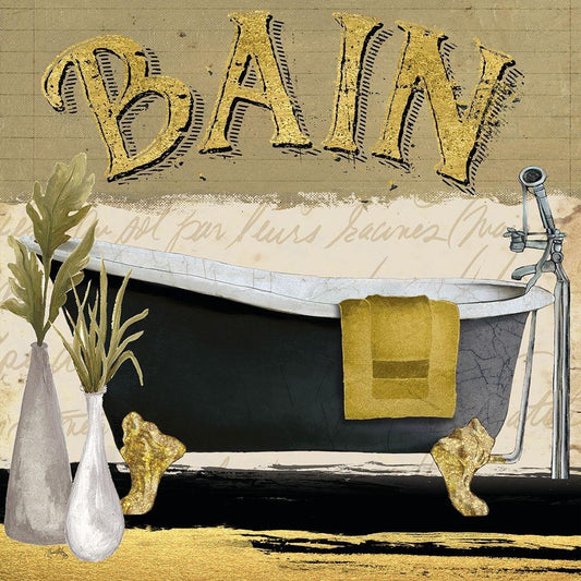 Gold and Black Bath Square I Gold Ornate Wood Framed Art Print with Double Matting by Medley, Elizabeth
