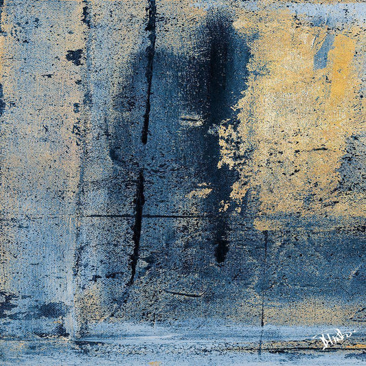 Gold on Blue Square I Gold Ornate Wood Framed Art Print with Double Matting by Pinto, Patricia