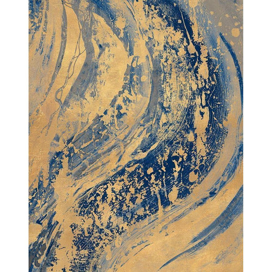 Blue And Gold Wave Gold Ornate Wood Framed Art Print with Double Matting by Pinto, Patricia
