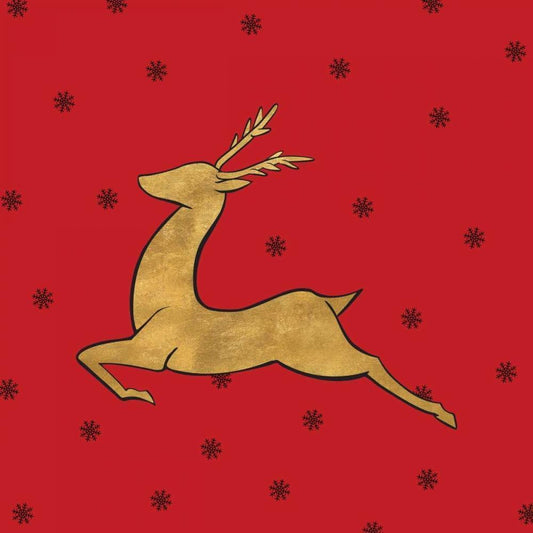 Golden Reindeer on Red Gold Ornate Wood Framed Art Print with Double Matting by Studio, Sd Graphics