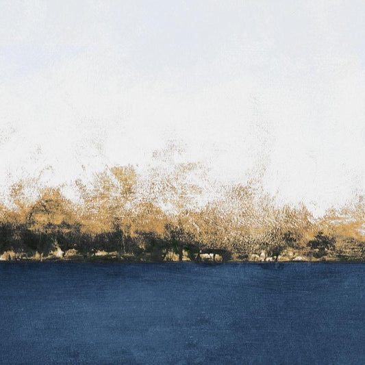 The Sea Sings in Blue and Gold Gold Ornate Wood Framed Art Print with Double Matting by Loreth, Lanie