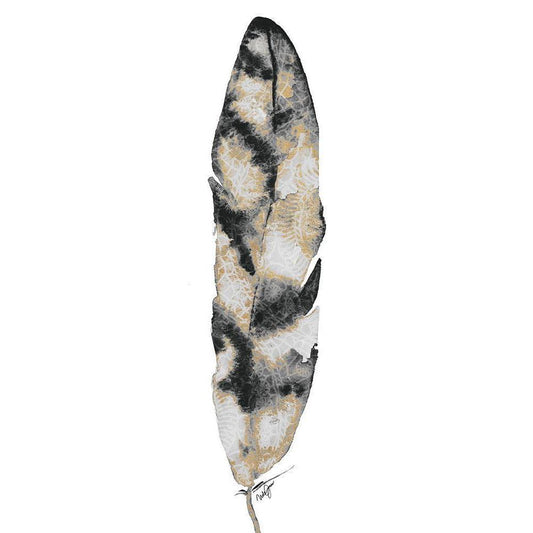 Black and Gold Feather Gold Ornate Wood Framed Art Print with Double Matting by James, Nola