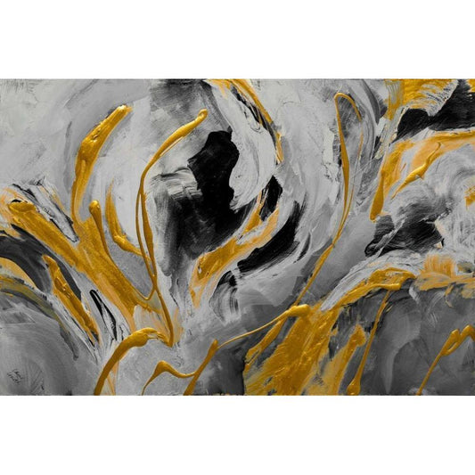 Black and Gold Stroke I Gold Ornate Wood Framed Art Print with Double Matting by Morris, Megan