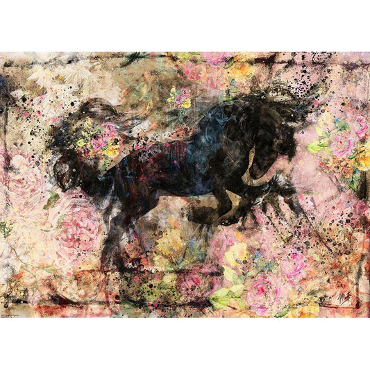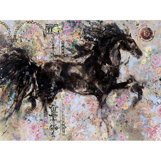 Floral Stallion II Gold Ornate Wood Framed Art Print with Double Matting by Wiley, Marta