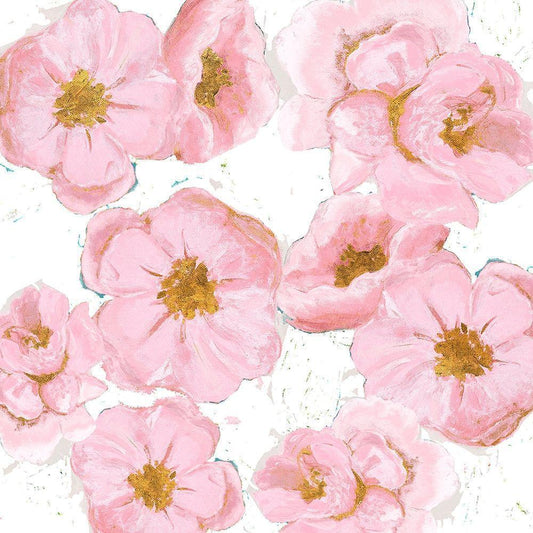 Pink And Gold Florals Gold Ornate Wood Framed Art Print with Double Matting by Pinto, Patricia