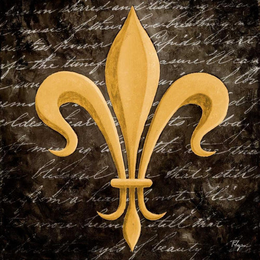 Scripted Gold Fleur de lis I Gold Ornate Wood Framed Art Print with Double Matting by Rhyan, Vivien