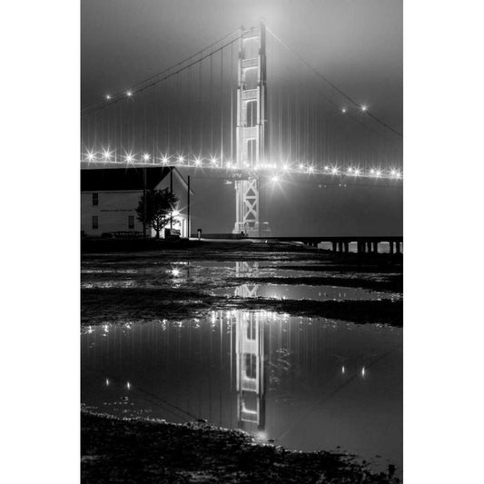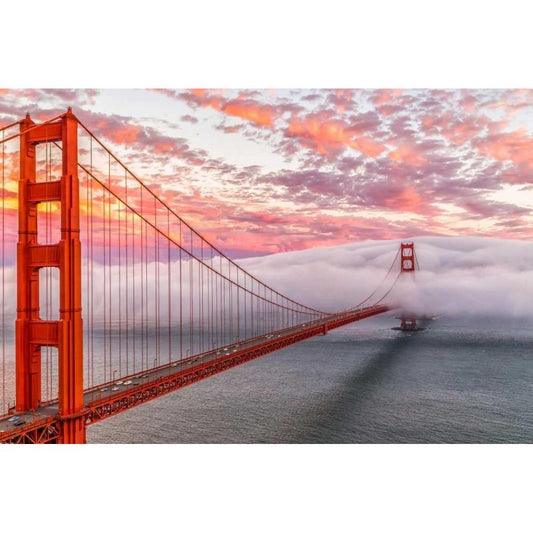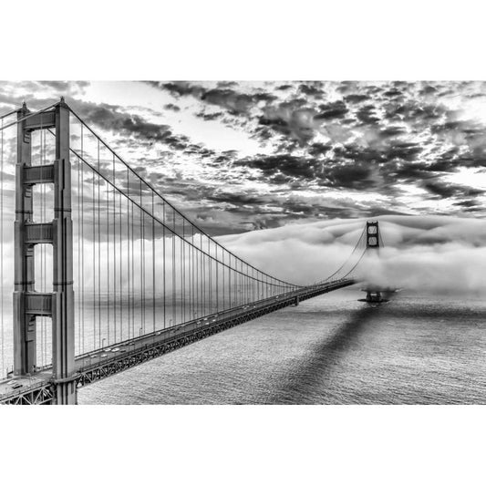 Golden Gate Bridge in Fog Gold Ornate Wood Framed Art Print with Double Matting by PhotoINC Studio