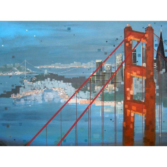 Twilight San Francisco Gold Ornate Wood Framed Art Print with Double Matting by Shannon, Carol Joy