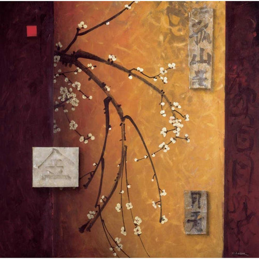 Oriental Blossoms I Gold Ornate Wood Framed Art Print with Double Matting by Li-Leger, Don