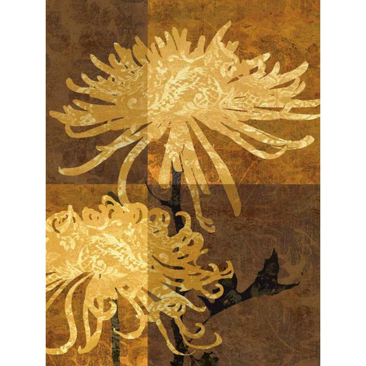 Golden Mums II Gold Ornate Wood Framed Art Print with Double Matting by Mallett, Keith