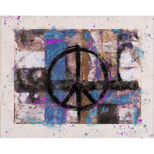 PEACE Blue Gold Ornate Wood Framed Art Print with Double Matting by Wiley, Marta