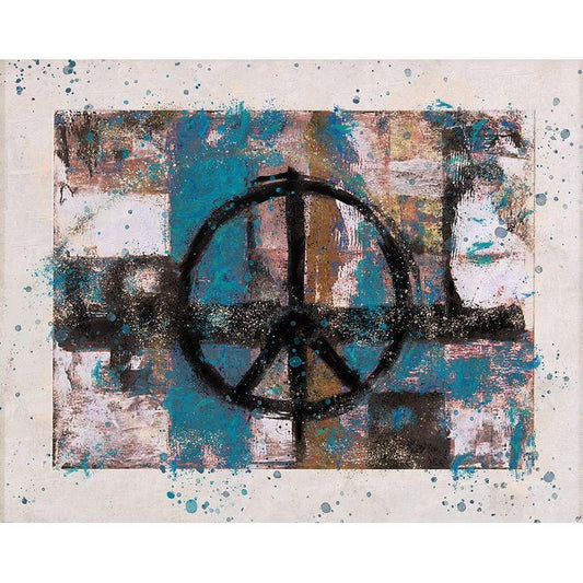 Teal PEACE Gold Ornate Wood Framed Art Print with Double Matting by Wiley, Marta