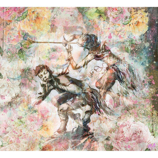 Floral Flute Player IV Gold Ornate Wood Framed Art Print with Double Matting by Wiley, Marta