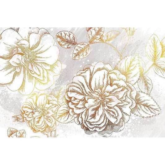 Metallic Flowers Gold Ornate Wood Framed Art Print with Double Matting by Lula Bijoux and Company
