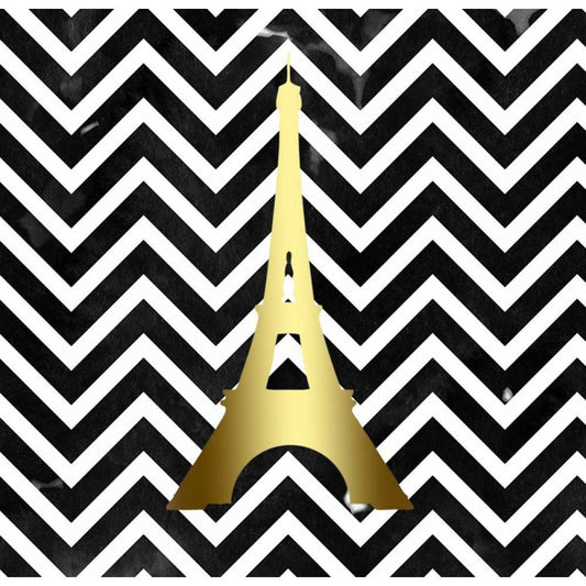 Eiffel Chevron Black White Gold Ornate Wood Framed Art Print with Double Matting by Matic,Jelena