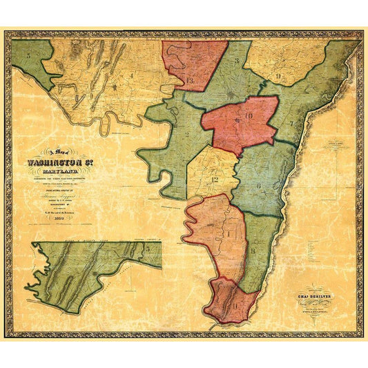 Washington Maryland Landowner - Mckee 1859 Gold Ornate Wood Framed Art Print with Double Matting by Mckee