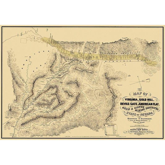 Gold Silver Mining Districts Nevada Gold Ornate Wood Framed Art Print with Double Matting by Higginson