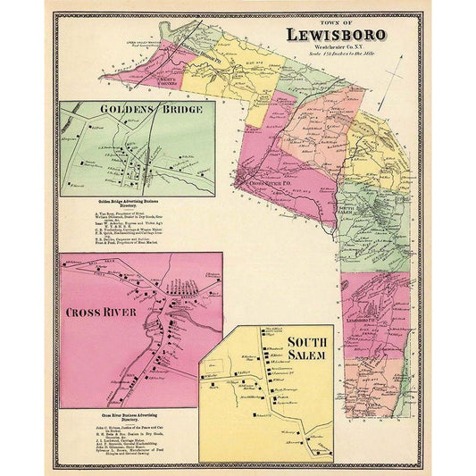 Lewisboro New York Landowner - Beers 1868 Gold Ornate Wood Framed Art Print with Double Matting by Beers