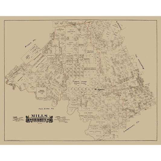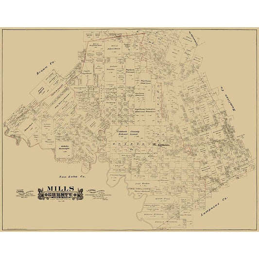 Mills County Texas - Hall 1888 Gold Ornate Wood Framed Art Print with Double Matting by Hall