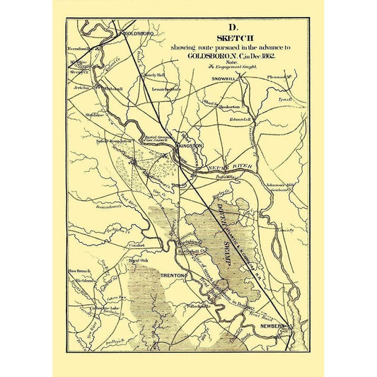 Goldsboro North Carolina - Bowen 1866 Gold Ornate Wood Framed Art Print with Double Matting by Bowen