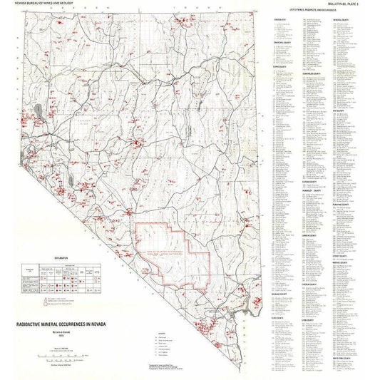 Radioactive Minerals Nevada Mines - Garside 1973 Gold Ornate Wood Framed Art Print with Double Matting by Garside