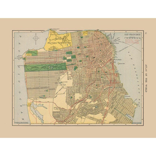 West San Francisco California - Reynold 1921 Gold Ornate Wood Framed Art Print with Double Matting by Reynold