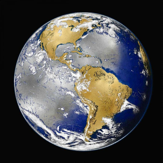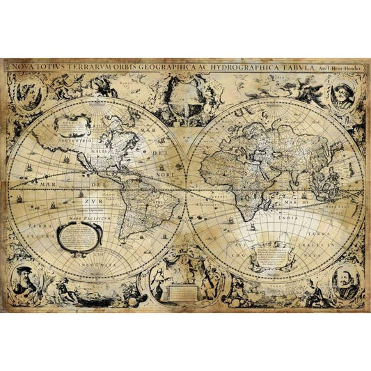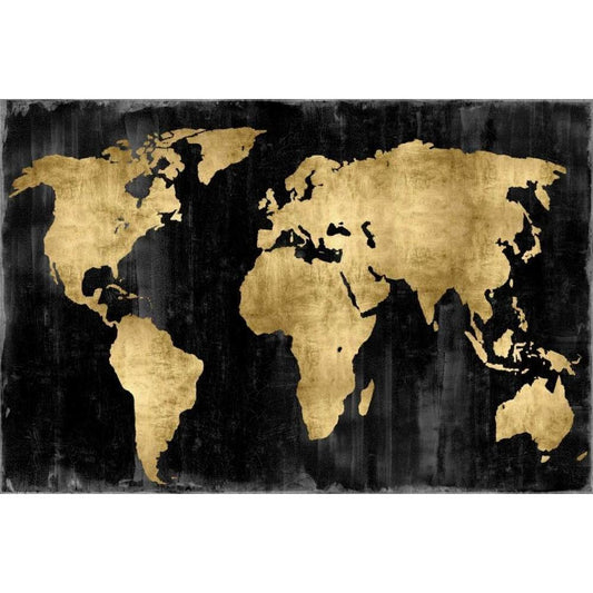 The World - Gold on Black Gold Ornate Wood Framed Art Print with Double Matting by Brennan, Russell