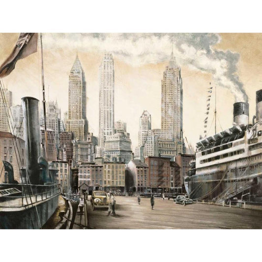 Departure-New York Gold Ornate Wood Framed Art Print with Double Matting by Daniels, Matthew