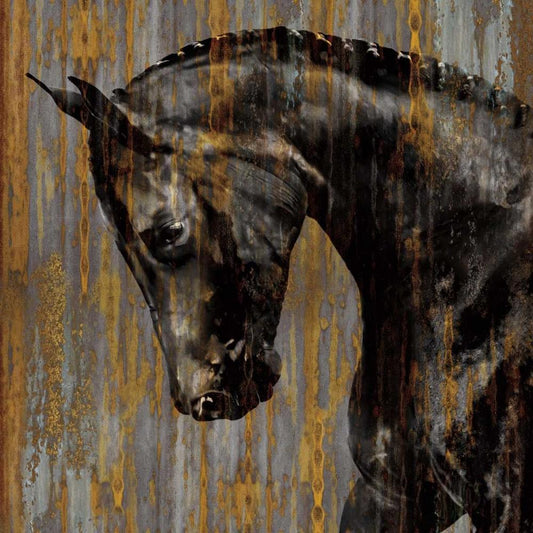 Black Stallion on Gold Gold Ornate Wood Framed Art Print with Double Matting by Rose, Martin