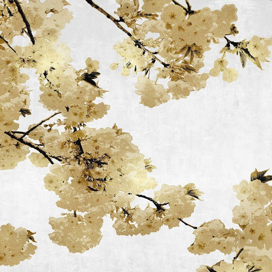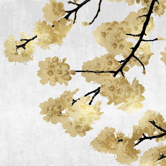 Gold Blossoms on White I Gold Ornate Wood Framed Art Print with Double Matting by Bennett, Kate