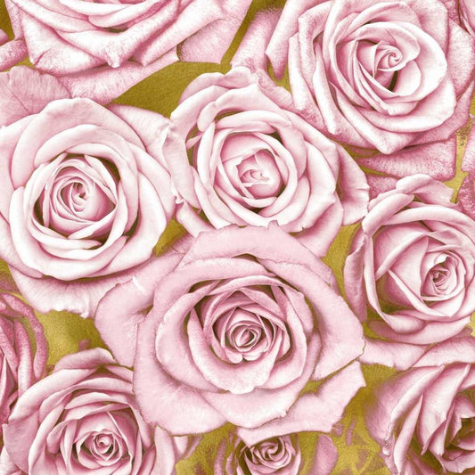 Pink Roses on Gold Gold Ornate Wood Framed Art Print with Double Matting by Bennett, Kate