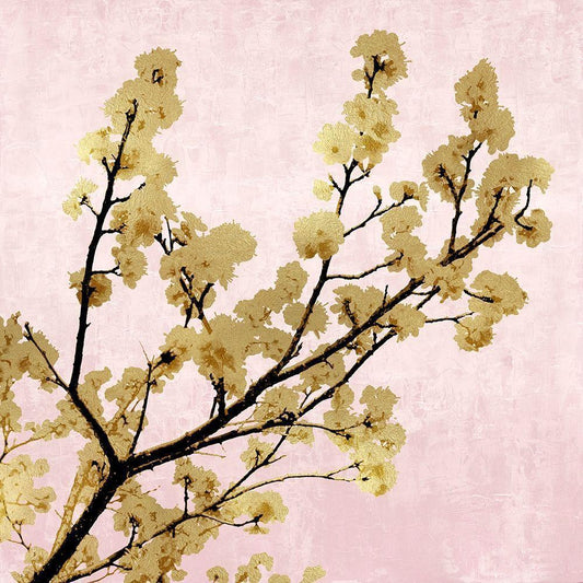 Gold Blossoms on Pink I Gold Ornate Wood Framed Art Print with Double Matting by Bennett, Kate